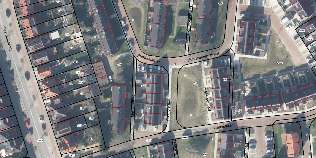Gladiolenpad 9 is gelegen op kadastraal perceel HGL01L593. Deze kadastrale aanduiding is uniek en wordt gebruikt door het Kadaster om eigendomsrechten en andere zakelijke rechten vast te leggen. Het perceel maakt onderdeel uit van de kadastrale gemeente Hengelo Overijssel.