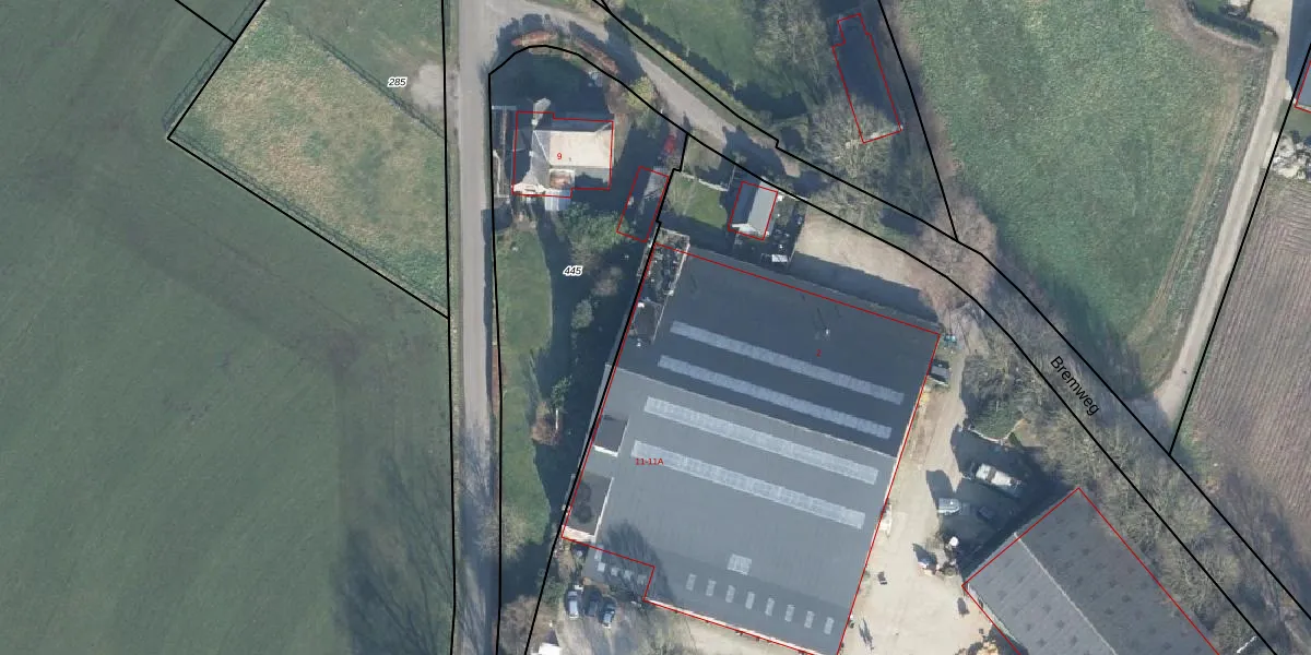 Het perceel waarop Bremweg 2 staat heeft een oppervlakte van 1,6 ha. Dit is een zeer groot perceel. De perceeloppervlakte wordt geregistreerd door het Kadaster. Gedetailleerde informatie over de maten van dit perceel kunt u vinden in het rapport Kadastrale kaart met maatvoering van Bremweg 2.
