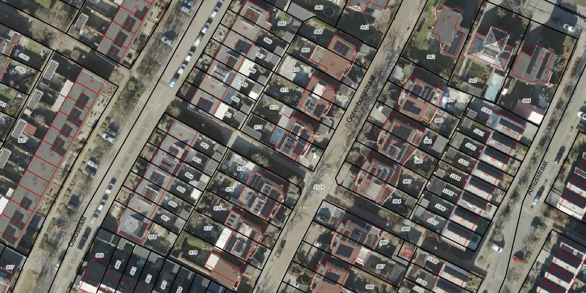 Het perceel waarop Gotenburgstraat 13 staat heeft een oppervlakte van 225 m². Dit is een middelgroot perceel. De perceeloppervlakte wordt geregistreerd door het Kadaster. Gedetailleerde informatie over de maten van dit perceel kunt u vinden in het rapport Kadastrale kaart met maatvoering van Gotenburgstraat 13.