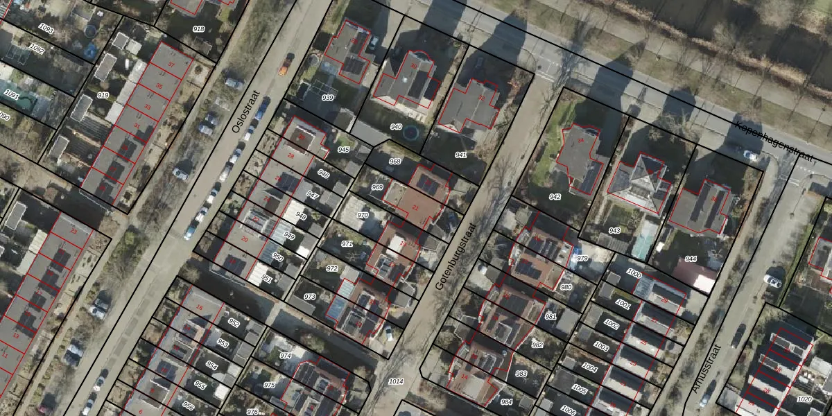 Het perceel waarop Gotenburgstraat 21 staat heeft een oppervlakte van 210 m². Dit is een middelgroot perceel. De perceeloppervlakte wordt geregistreerd door het Kadaster. Gedetailleerde informatie over de maten van dit perceel kunt u vinden in het rapport Kadastrale kaart met maatvoering van Gotenburgstraat 21.