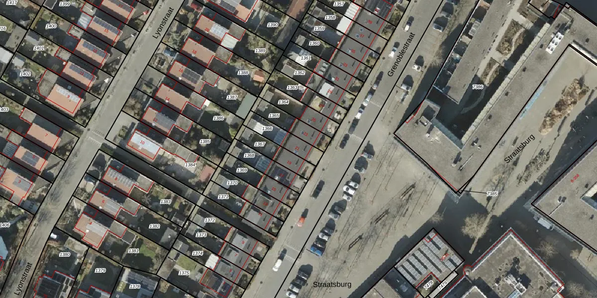 Het perceel waarop Grenoblestraat 21 staat heeft een oppervlakte van 154 m². Dit is een middelgroot perceel. De perceeloppervlakte wordt geregistreerd door het Kadaster. Gedetailleerde informatie over de maten van dit perceel kunt u vinden in het rapport Kadastrale kaart met maatvoering van Grenoblestraat 21.