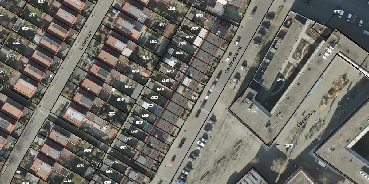 Gebruik de zoekbalk of klik op een perceel voor informatie over de adressen binnen dit perceel.