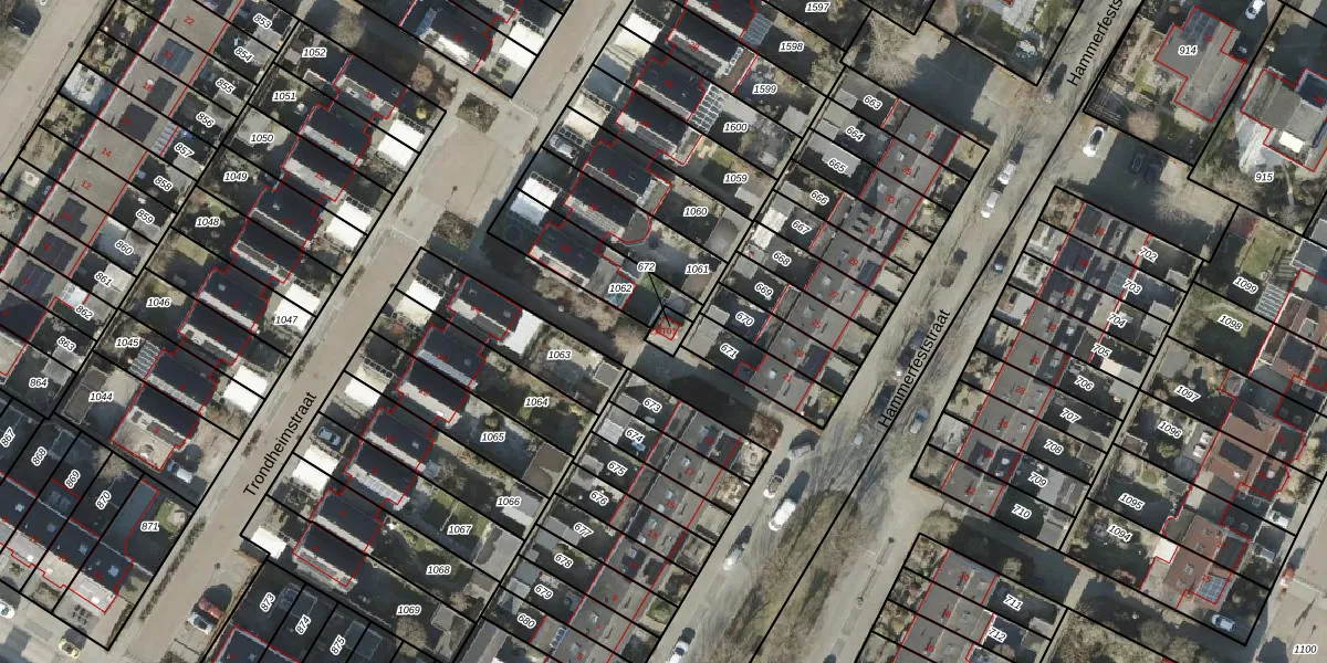 Het perceel waarop Hammerfeststraat 21-T01 staat heeft een oppervlakte van 30 m². Dit is een klein perceel. De perceeloppervlakte wordt geregistreerd door het Kadaster. Gedetailleerde informatie over de maten van dit perceel kunt u vinden in het rapport Kadastrale kaart met maatvoering van Hammerfeststraat 21-T01.