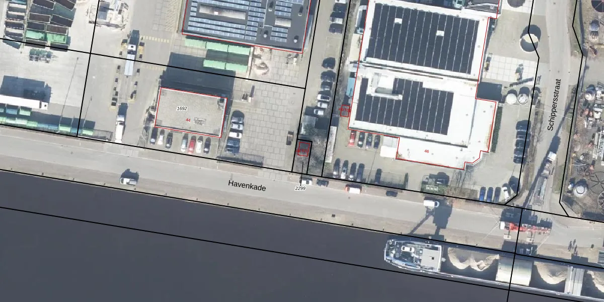 Het perceel waarop Havenkade 44-T01 staat heeft een oppervlakte van 55 m². Dit is een klein perceel. De perceeloppervlakte wordt geregistreerd door het Kadaster. Gedetailleerde informatie over de maten van dit perceel kunt u vinden in het rapport Kadastrale kaart met maatvoering van Havenkade 44-T01.