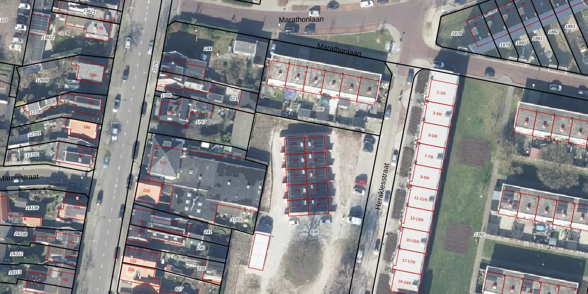 Het perceel waarop Heraklesstraat 2-K staat heeft een oppervlakte van 3585 m². Dit is een zeer groot perceel. De perceeloppervlakte wordt geregistreerd door het Kadaster. Gedetailleerde informatie over de maten van dit perceel kunt u vinden in het rapport Kadastrale kaart met maatvoering van Heraklesstraat 2-K.