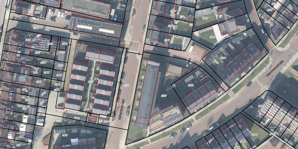 Het perceel waarop Hermesstraat 17-E staat heeft een oppervlakte van 1714 m². Dit is een zeer groot perceel. De perceeloppervlakte wordt geregistreerd door het Kadaster. Gedetailleerde informatie over de maten van dit perceel kunt u vinden in het rapport Kadastrale kaart met maatvoering van Hermesstraat 17-E.