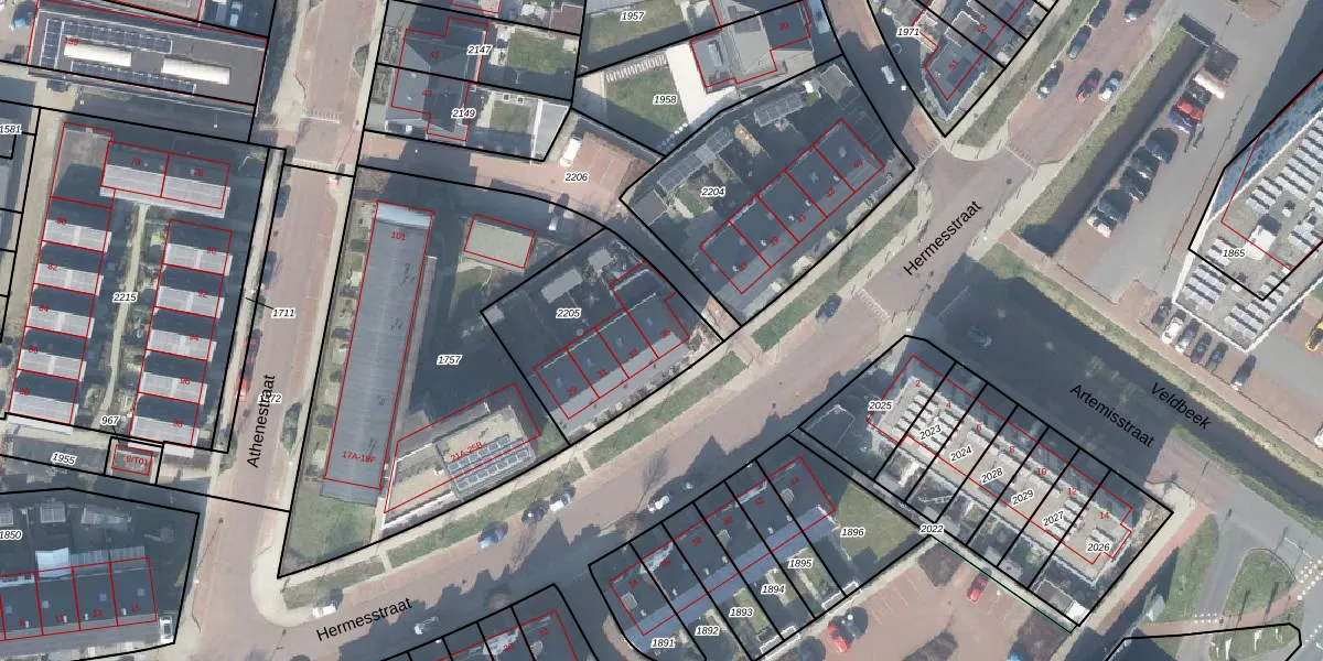 Het perceel waarop Hermesstraat 35 staat heeft een oppervlakte van 639 m². Dit is een groot perceel. De perceeloppervlakte wordt geregistreerd door het Kadaster. Gedetailleerde informatie over de maten van dit perceel kunt u vinden in het rapport Kadastrale kaart met maatvoering van Hermesstraat 35.