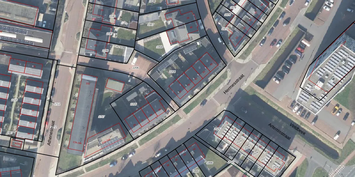 Het perceel waarop Hermesstraat 37 staat heeft een oppervlakte van 949 m². Dit is een groot perceel. De perceeloppervlakte wordt geregistreerd door het Kadaster. Gedetailleerde informatie over de maten van dit perceel kunt u vinden in het rapport Kadastrale kaart met maatvoering van Hermesstraat 37.