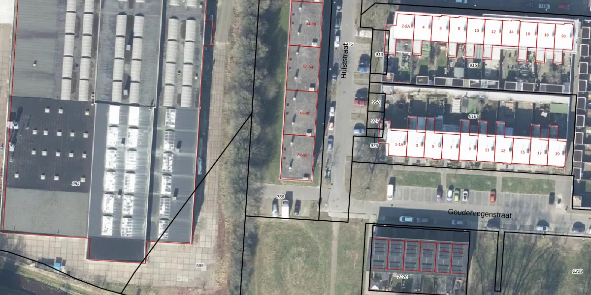Het perceel waarop Hulststraat 90 staat heeft een oppervlakte van 2594 m². Dit is een zeer groot perceel. De perceeloppervlakte wordt geregistreerd door het Kadaster. Gedetailleerde informatie over de maten van dit perceel kunt u vinden in het rapport Kadastrale kaart met maatvoering van Hulststraat 90.