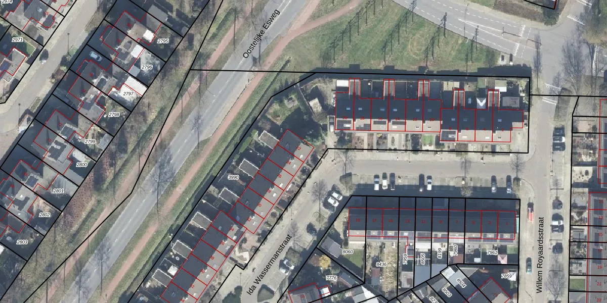 Het perceel waarop Ida Wassermanstraat 22 staat heeft een oppervlakte van 7492 m². Dit is een zeer groot perceel. De perceeloppervlakte wordt geregistreerd door het Kadaster. Gedetailleerde informatie over de maten van dit perceel kunt u vinden in het rapport Kadastrale kaart met maatvoering van Ida Wassermanstraat 22.