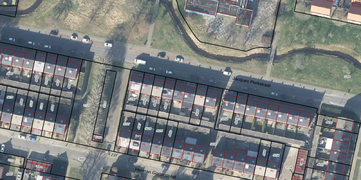 Het perceel waarop Jacques Perkstraat 26 staat heeft een oppervlakte van 2932 m². Dit is een zeer groot perceel. De perceeloppervlakte wordt geregistreerd door het Kadaster. Gedetailleerde informatie over de maten van dit perceel kunt u vinden in het rapport Kadastrale kaart met maatvoering van Jacques Perkstraat 26.