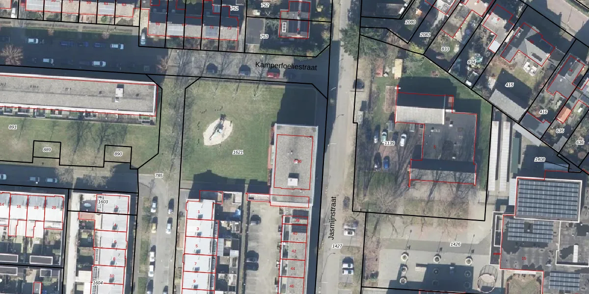 Het perceel waarop Jasmijnstraat 20 staat heeft een oppervlakte van 4855 m². Dit is een zeer groot perceel. De perceeloppervlakte wordt geregistreerd door het Kadaster. Gedetailleerde informatie over de maten van dit perceel kunt u vinden in het rapport Kadastrale kaart met maatvoering van Jasmijnstraat 20.