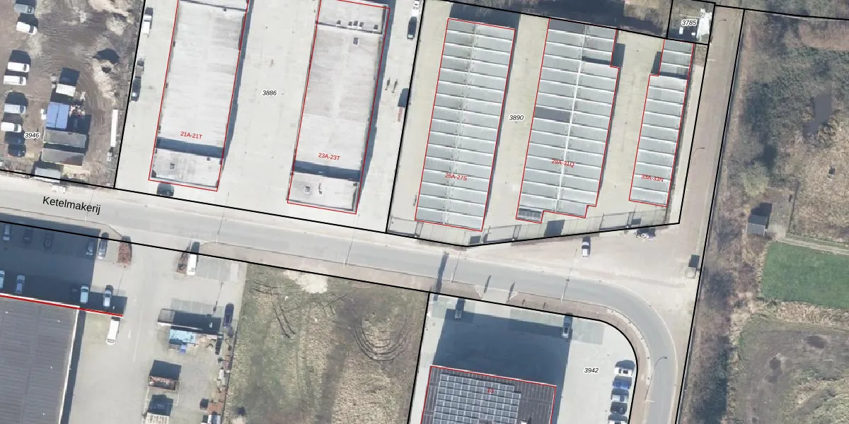 Het perceel waarop Ketelmakerij 25-A staat heeft een oppervlakte van 3488 m². Dit is een zeer groot perceel. De perceeloppervlakte wordt geregistreerd door het Kadaster. Gedetailleerde informatie over de maten van dit perceel kunt u vinden in het rapport Kadastrale kaart met maatvoering van Ketelmakerij 25-A.