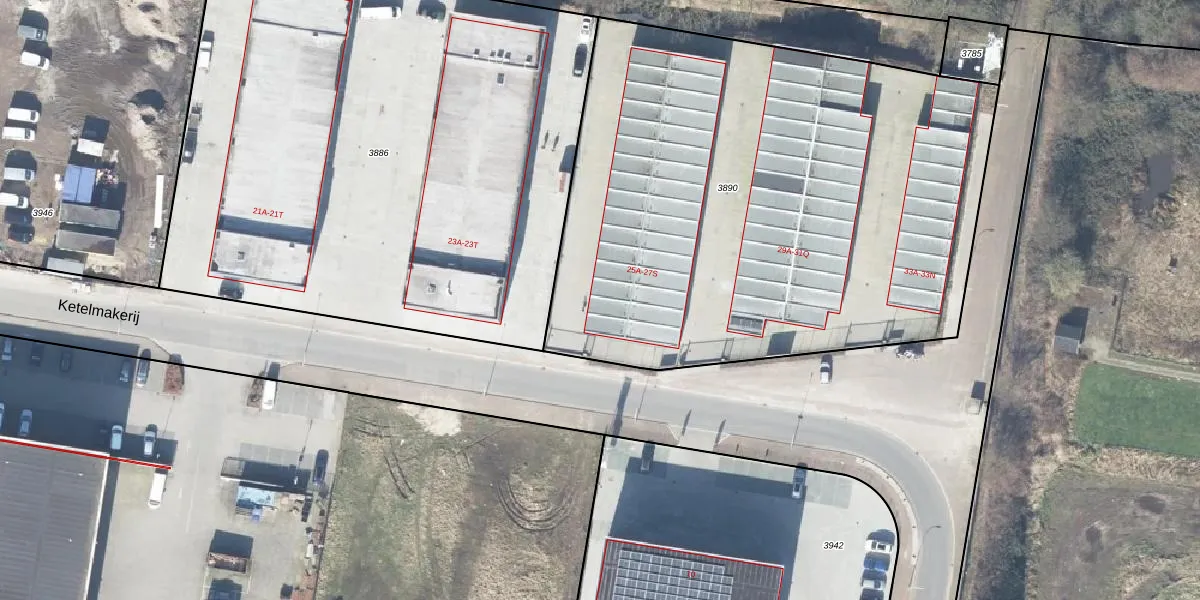 Het perceel waarop Ketelmakerij 25-B staat heeft een oppervlakte van 3488 m². Dit is een zeer groot perceel. De perceeloppervlakte wordt geregistreerd door het Kadaster. Gedetailleerde informatie over de maten van dit perceel kunt u vinden in het rapport Kadastrale kaart met maatvoering van Ketelmakerij 25-B.