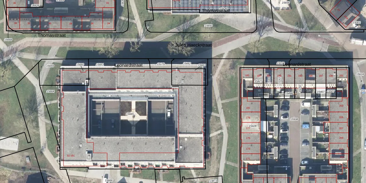 Het perceel waarop Leonardstraat 143 staat heeft een oppervlakte van 4035 m². Dit is een zeer groot perceel. De perceeloppervlakte wordt geregistreerd door het Kadaster. Gedetailleerde informatie over de maten van dit perceel kunt u vinden in het rapport Kadastrale kaart met maatvoering van Leonardstraat 143.