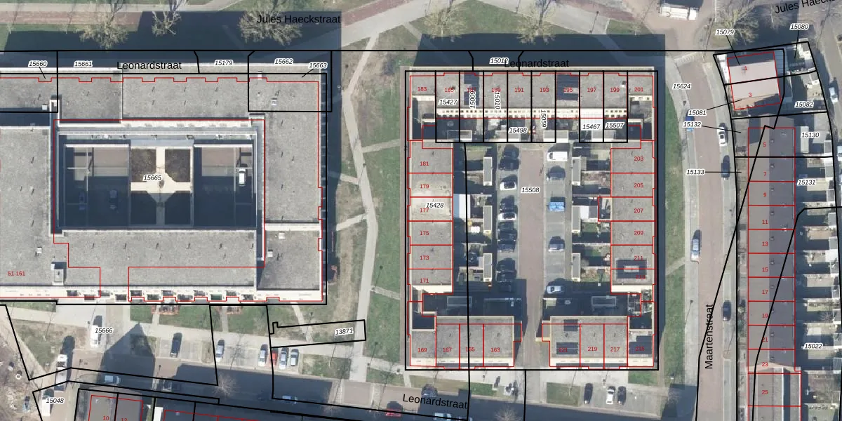 Het perceel waarop Leonardstraat 177 staat heeft een oppervlakte van 911 m². Dit is een groot perceel. De perceeloppervlakte wordt geregistreerd door het Kadaster. Gedetailleerde informatie over de maten van dit perceel kunt u vinden in het rapport Kadastrale kaart met maatvoering van Leonardstraat 177.