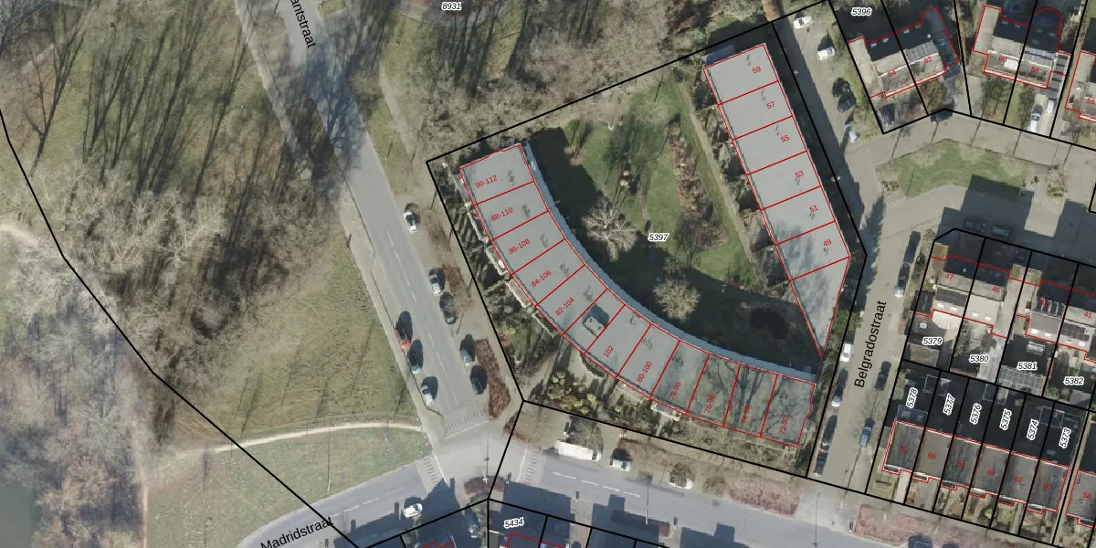 Het perceel waarop Levantstraat 106 staat heeft een oppervlakte van 4286 m². Dit is een zeer groot perceel. De perceeloppervlakte wordt geregistreerd door het Kadaster. Gedetailleerde informatie over de maten van dit perceel kunt u vinden in het rapport Kadastrale kaart met maatvoering van Levantstraat 106.