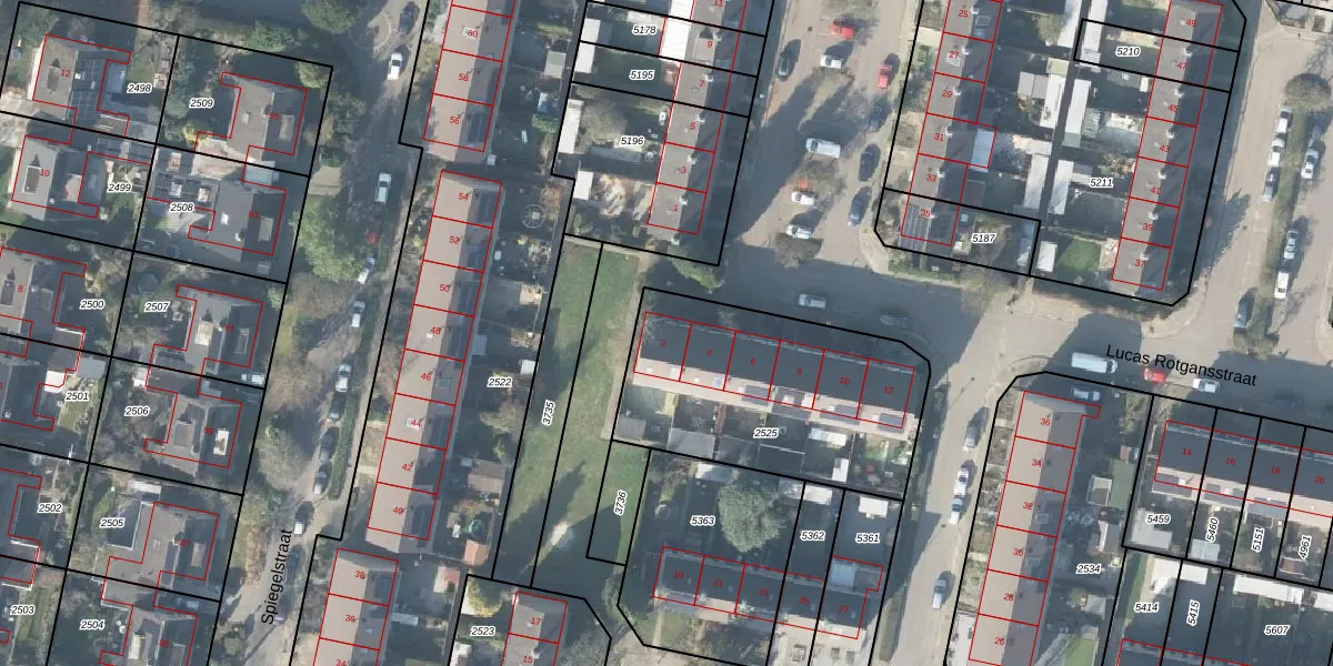 Het perceel waarop Lucas Rotgansstraat 2 staat heeft een oppervlakte van 1039 m². Dit is een zeer groot perceel. De perceeloppervlakte wordt geregistreerd door het Kadaster. Gedetailleerde informatie over de maten van dit perceel kunt u vinden in het rapport Kadastrale kaart met maatvoering van Lucas Rotgansstraat 2.
