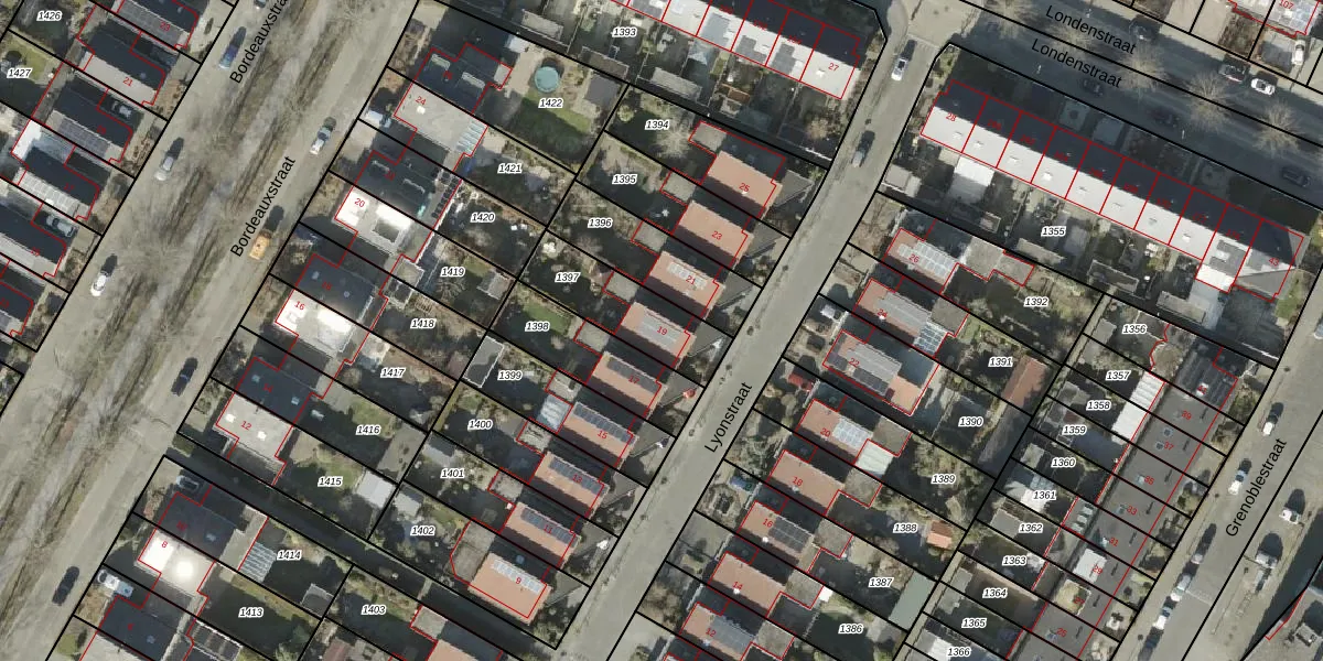 Gebruik de zoekbalk of klik op een perceel voor informatie over de adressen binnen dit perceel.