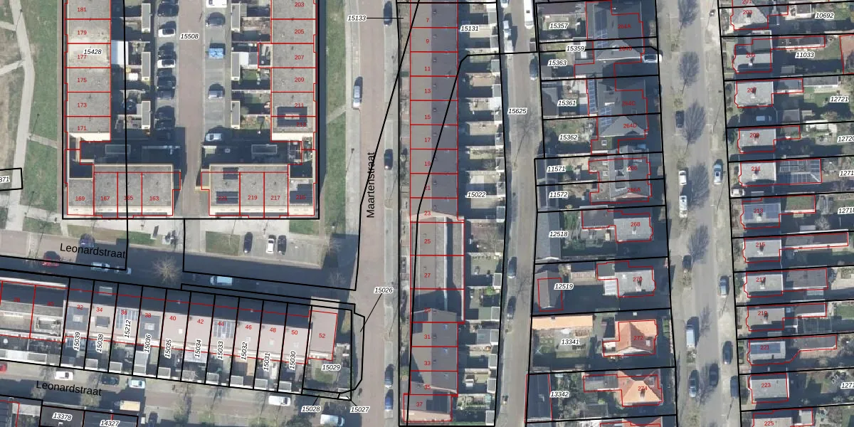 Maartenstraat 23 is gelegen op kadastraal perceel HGL01D15022. Deze kadastrale aanduiding is uniek en wordt gebruikt door het Kadaster om eigendomsrechten en andere zakelijke rechten vast te leggen. Het perceel maakt onderdeel uit van de kadastrale gemeente Hengelo Overijssel.