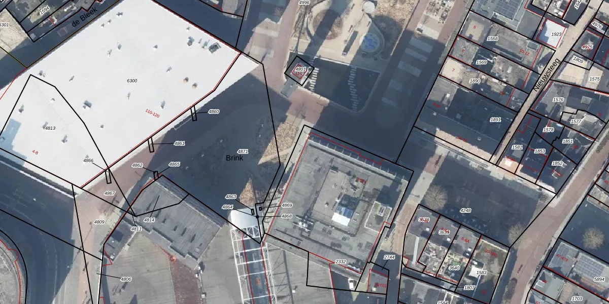Het perceel waarop Markt 107 staat heeft een oppervlakte van 1585 m². Dit is een zeer groot perceel. De perceeloppervlakte wordt geregistreerd door het Kadaster. Gedetailleerde informatie over de maten van dit perceel kunt u vinden in het rapport Kadastrale kaart met maatvoering van Markt 107.