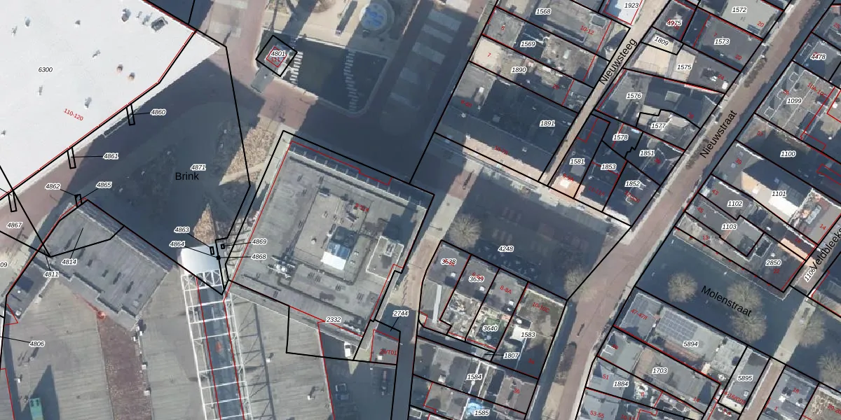 Het perceel waarop Markt 201 staat heeft een oppervlakte van 1585 m². Dit is een zeer groot perceel. De perceeloppervlakte wordt geregistreerd door het Kadaster. Gedetailleerde informatie over de maten van dit perceel kunt u vinden in het rapport Kadastrale kaart met maatvoering van Markt 201.