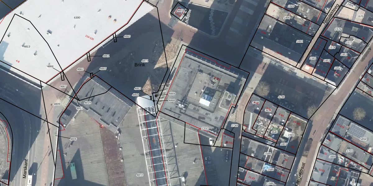 Het perceel waarop Markt 213 staat heeft een oppervlakte van 1585 m². Dit is een zeer groot perceel. De perceeloppervlakte wordt geregistreerd door het Kadaster. Gedetailleerde informatie over de maten van dit perceel kunt u vinden in het rapport Kadastrale kaart met maatvoering van Markt 213.