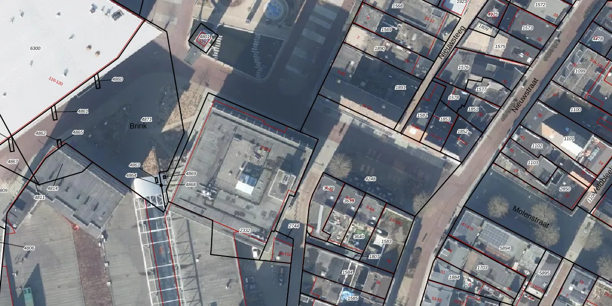 Het perceel waarop Markt 301 staat heeft een oppervlakte van 1585 m². Dit is een zeer groot perceel. De perceeloppervlakte wordt geregistreerd door het Kadaster. Gedetailleerde informatie over de maten van dit perceel kunt u vinden in het rapport Kadastrale kaart met maatvoering van Markt 301.