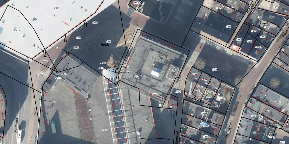 Het perceel waarop Markt 314 staat heeft een oppervlakte van 1585 m². Dit is een zeer groot perceel. De perceeloppervlakte wordt geregistreerd door het Kadaster. Gedetailleerde informatie over de maten van dit perceel kunt u vinden in het rapport Kadastrale kaart met maatvoering van Markt 314.