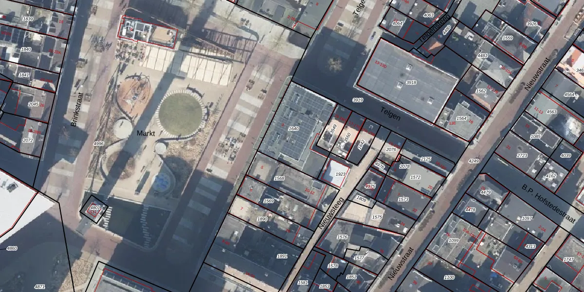Het perceel waarop Markt 4-D staat heeft een oppervlakte van 529 m². Dit is een groot perceel. De perceeloppervlakte wordt geregistreerd door het Kadaster. Gedetailleerde informatie over de maten van dit perceel kunt u vinden in het rapport Kadastrale kaart met maatvoering van Markt 4-D.