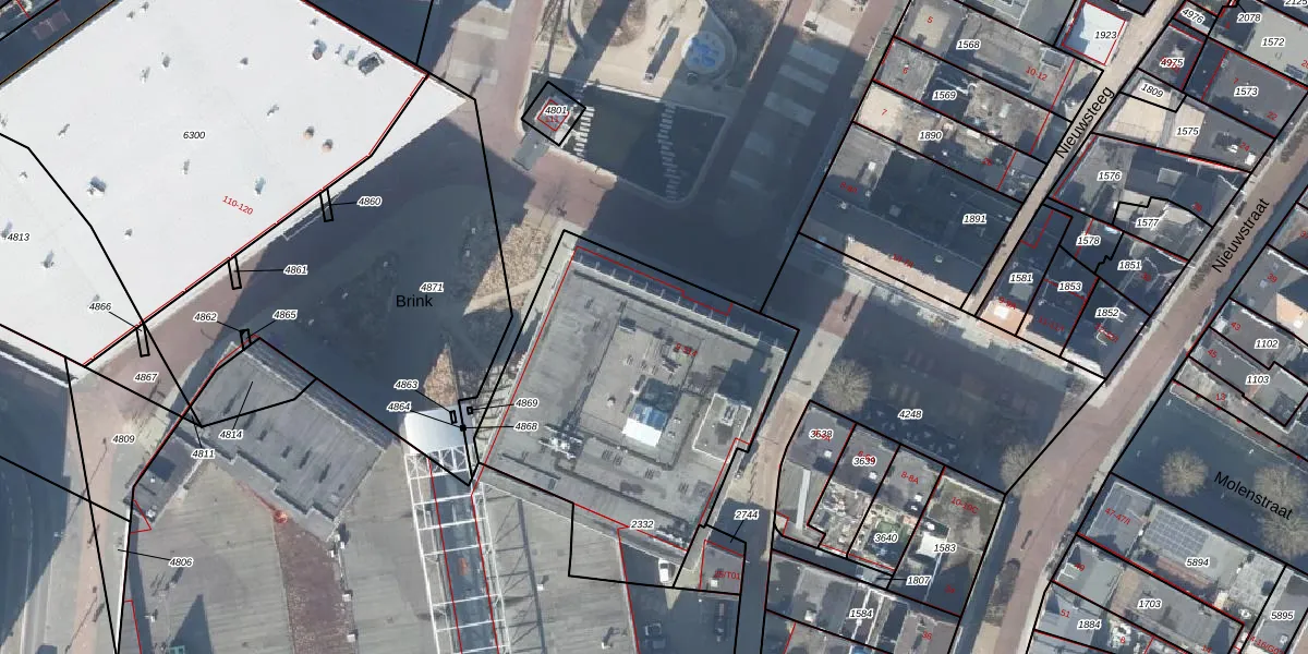 Het perceel waarop Markt 405 staat heeft een oppervlakte van 1585 m². Dit is een zeer groot perceel. De perceeloppervlakte wordt geregistreerd door het Kadaster. Gedetailleerde informatie over de maten van dit perceel kunt u vinden in het rapport Kadastrale kaart met maatvoering van Markt 405.