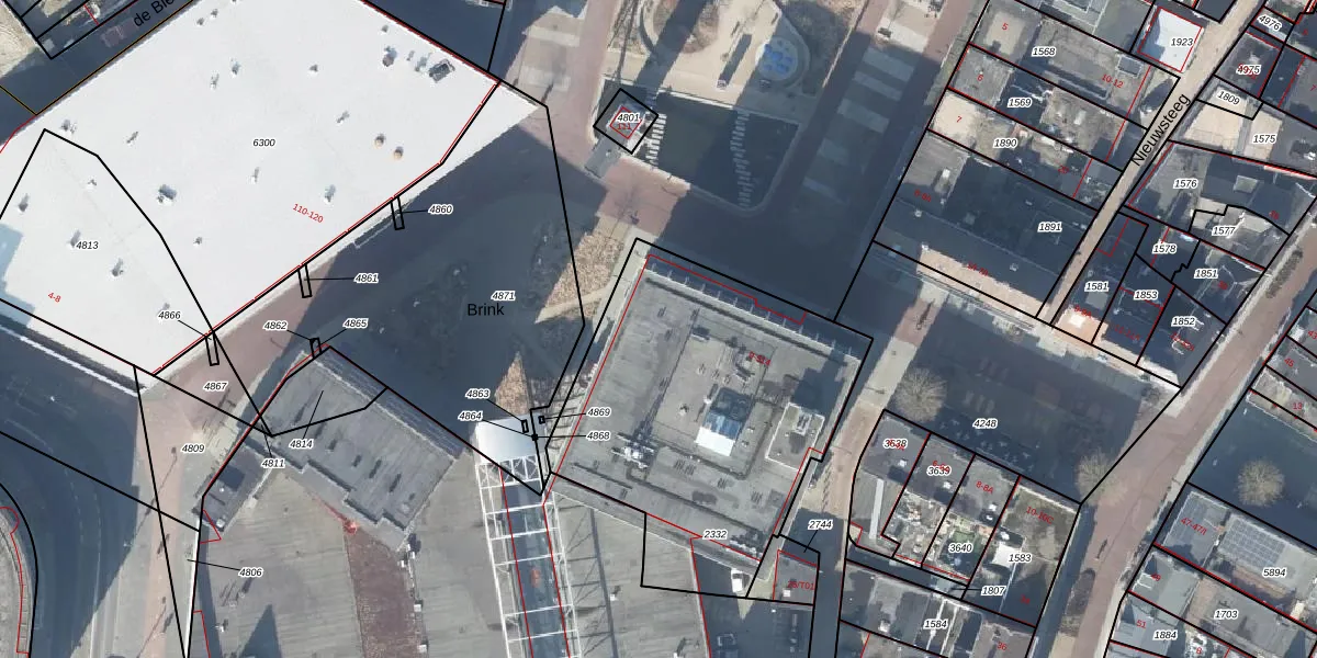 Het perceel waarop Markt 408 staat heeft een oppervlakte van 1585 m². Dit is een zeer groot perceel. De perceeloppervlakte wordt geregistreerd door het Kadaster. Gedetailleerde informatie over de maten van dit perceel kunt u vinden in het rapport Kadastrale kaart met maatvoering van Markt 408.