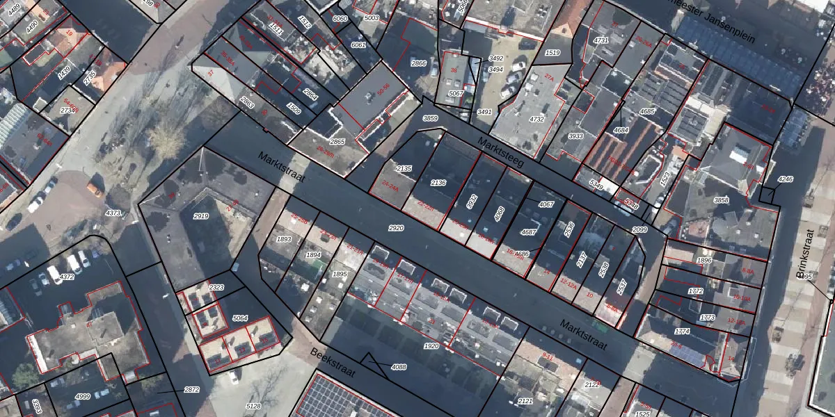 Het perceel waarop Marktstraat 22-B staat heeft een oppervlakte van 218 m². Dit is een middelgroot perceel. De perceeloppervlakte wordt geregistreerd door het Kadaster. Gedetailleerde informatie over de maten van dit perceel kunt u vinden in het rapport Kadastrale kaart met maatvoering van Marktstraat 22-B.