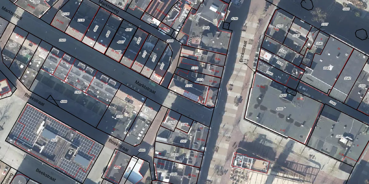 Het perceel waarop Marktstraat 4 staat heeft een oppervlakte van 259 m². Dit is een middelgroot perceel. De perceeloppervlakte wordt geregistreerd door het Kadaster. Gedetailleerde informatie over de maten van dit perceel kunt u vinden in het rapport Kadastrale kaart met maatvoering van Marktstraat 4.