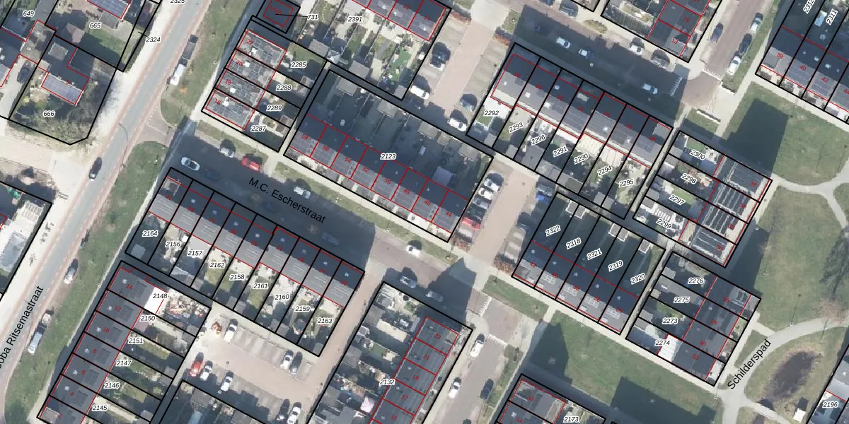 Het perceel waarop M.C. Escherstraat 46 staat heeft een oppervlakte van 995 m². Dit is een groot perceel. De perceeloppervlakte wordt geregistreerd door het Kadaster. Gedetailleerde informatie over de maten van dit perceel kunt u vinden in het rapport Kadastrale kaart met maatvoering van M.C. Escherstraat 46.
