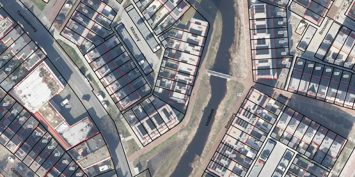 Het perceel waarop Mouterij 24 staat heeft een oppervlakte van 117 m². Dit is een middelgroot perceel. De perceeloppervlakte wordt geregistreerd door het Kadaster. Gedetailleerde informatie over de maten van dit perceel kunt u vinden in het rapport Kadastrale kaart met maatvoering van Mouterij 24.