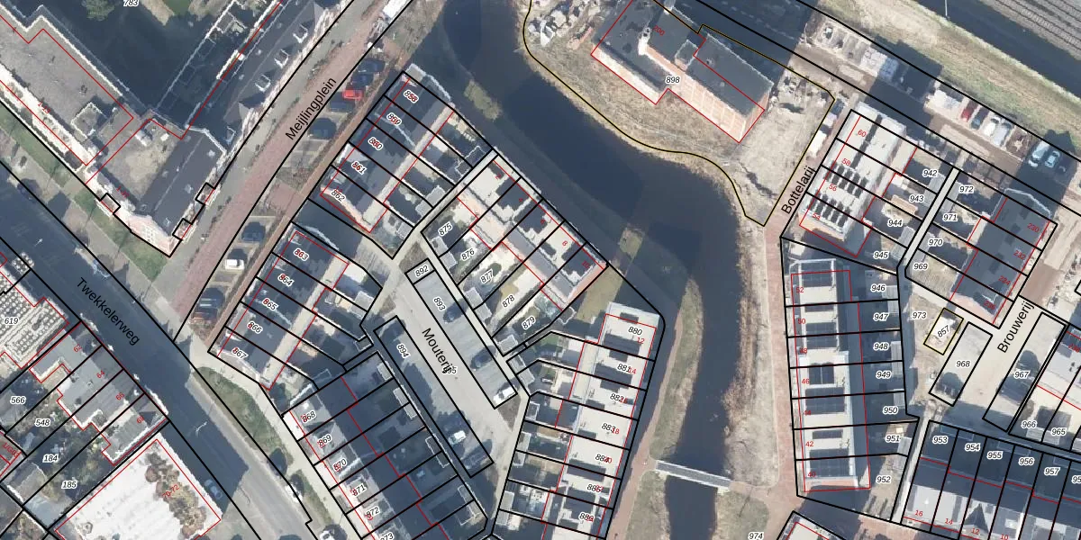 Het perceel waarop Mouterij 8 staat heeft een oppervlakte van 141 m². Dit is een middelgroot perceel. De perceeloppervlakte wordt geregistreerd door het Kadaster. Gedetailleerde informatie over de maten van dit perceel kunt u vinden in het rapport Kadastrale kaart met maatvoering van Mouterij 8.