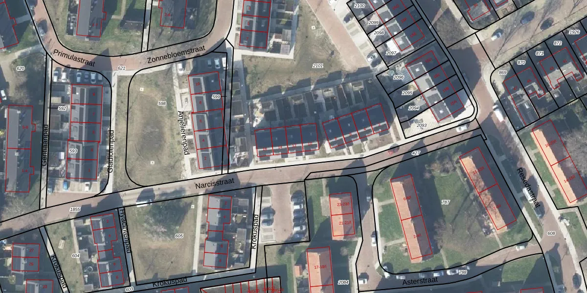 Het perceel waarop Narcisstraat 12 staat heeft een oppervlakte van 4703 m². Dit is een zeer groot perceel. De perceeloppervlakte wordt geregistreerd door het Kadaster. Gedetailleerde informatie over de maten van dit perceel kunt u vinden in het rapport Kadastrale kaart met maatvoering van Narcisstraat 12.