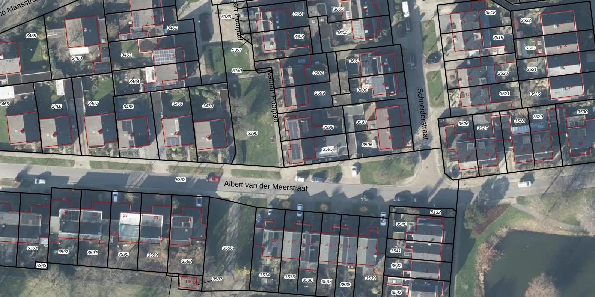 Gebruik de zoekbalk of klik op een perceel voor informatie over de adressen binnen dit perceel.