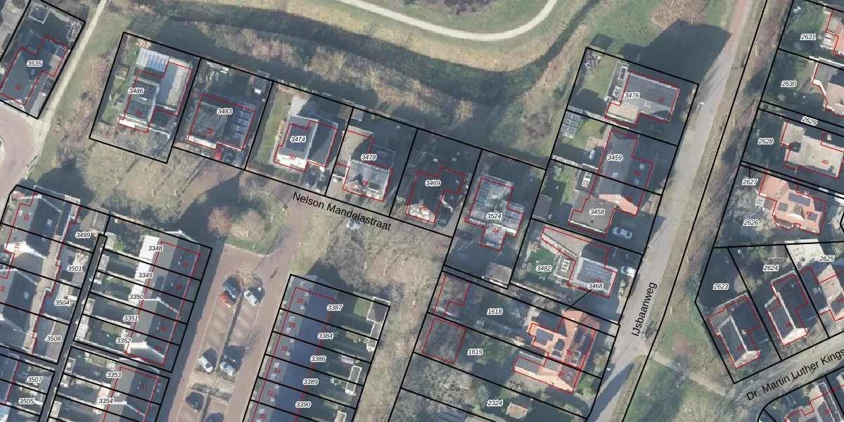 Gebruik de zoekbalk of klik op een perceel voor informatie over de adressen binnen dit perceel.