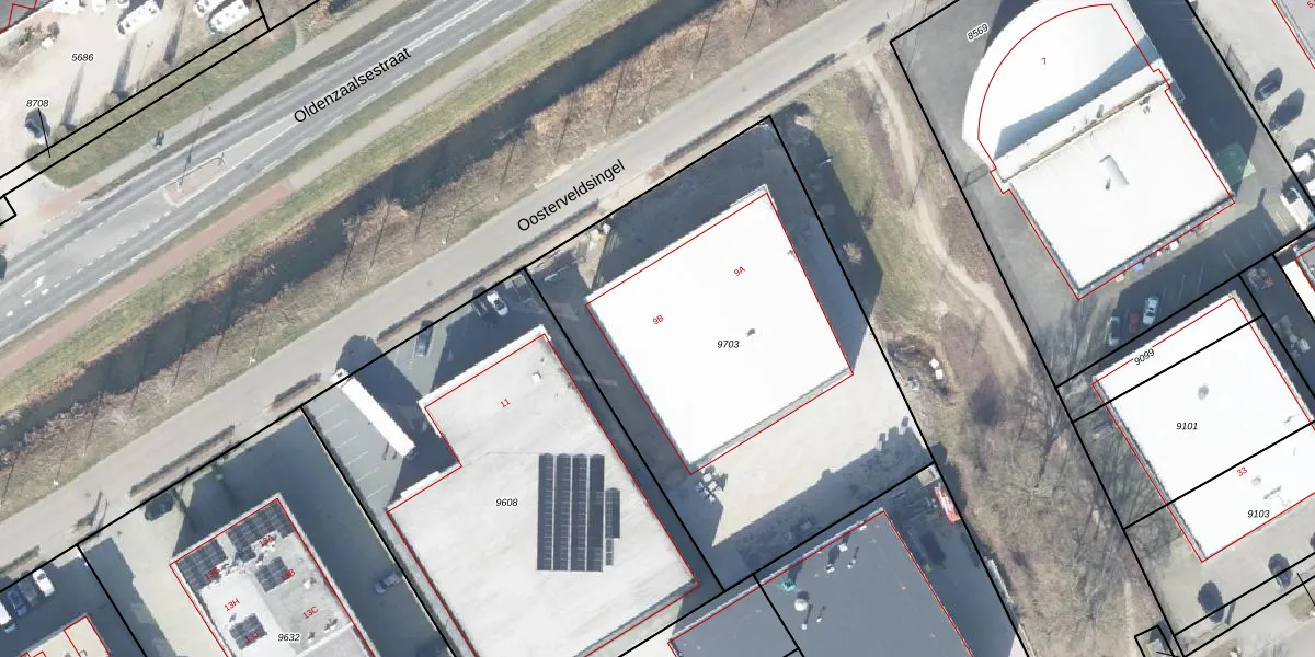 Oosterveldsingel 9-B is gelegen op kadastraal perceel HGL01T9703. Deze kadastrale aanduiding is uniek en wordt gebruikt door het Kadaster om eigendomsrechten en andere zakelijke rechten vast te leggen. Het perceel maakt onderdeel uit van de kadastrale gemeente Hengelo Overijssel.