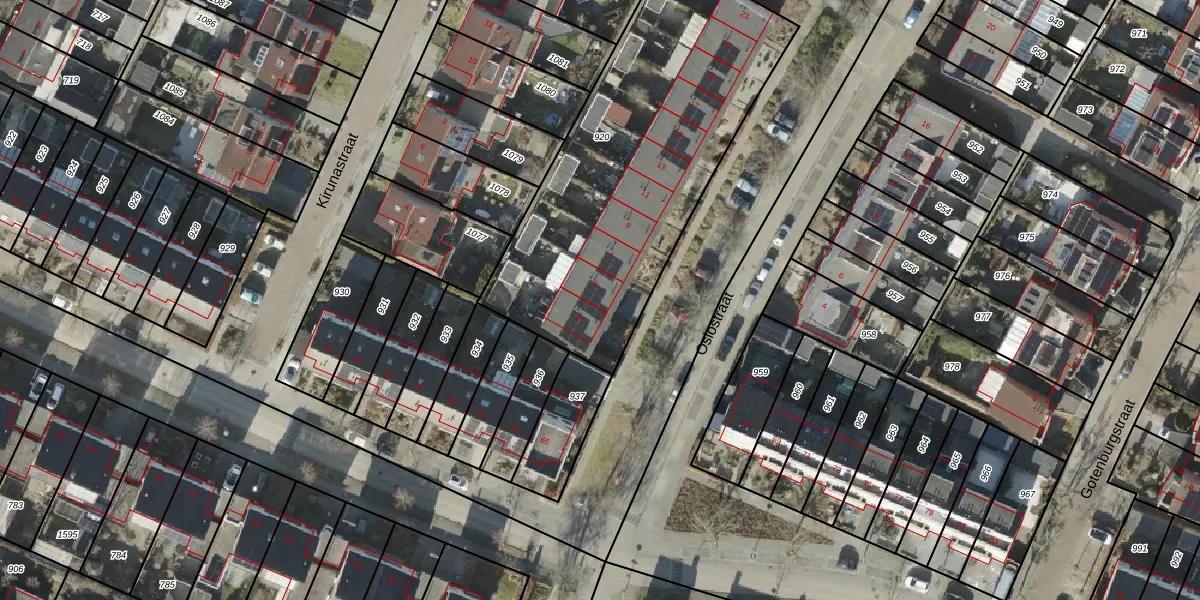 Het perceel waarop Oslostraat 5 staat heeft een oppervlakte van 1638 m². Dit is een zeer groot perceel. De perceeloppervlakte wordt geregistreerd door het Kadaster. Gedetailleerde informatie over de maten van dit perceel kunt u vinden in het rapport Kadastrale kaart met maatvoering van Oslostraat 5.