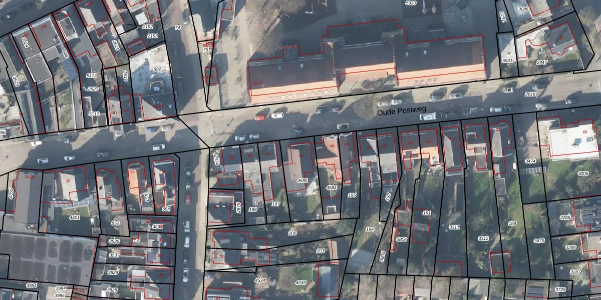 Het perceel waarop Oude Postweg 44 staat heeft een oppervlakte van 322 m². Dit is een groot perceel. De perceeloppervlakte wordt geregistreerd door het Kadaster. Gedetailleerde informatie over de maten van dit perceel kunt u vinden in het rapport Kadastrale kaart met maatvoering van Oude Postweg 44.
