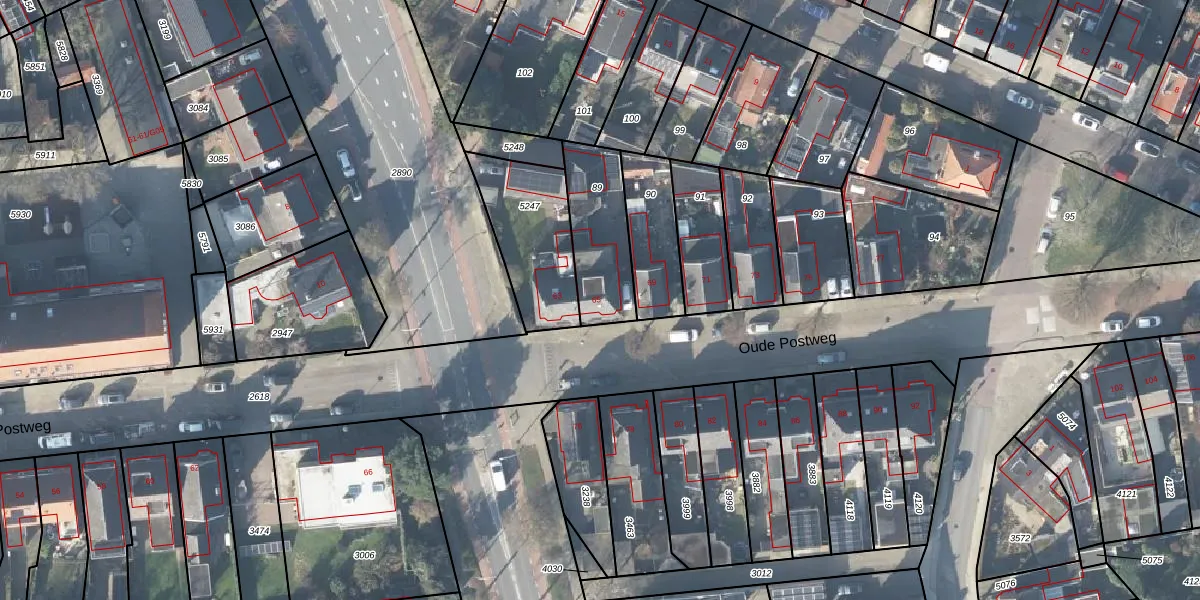 Het perceel waarop Oude Postweg 65 staat heeft een oppervlakte van 279 m². Dit is een middelgroot perceel. De perceeloppervlakte wordt geregistreerd door het Kadaster. Gedetailleerde informatie over de maten van dit perceel kunt u vinden in het rapport Kadastrale kaart met maatvoering van Oude Postweg 65.
