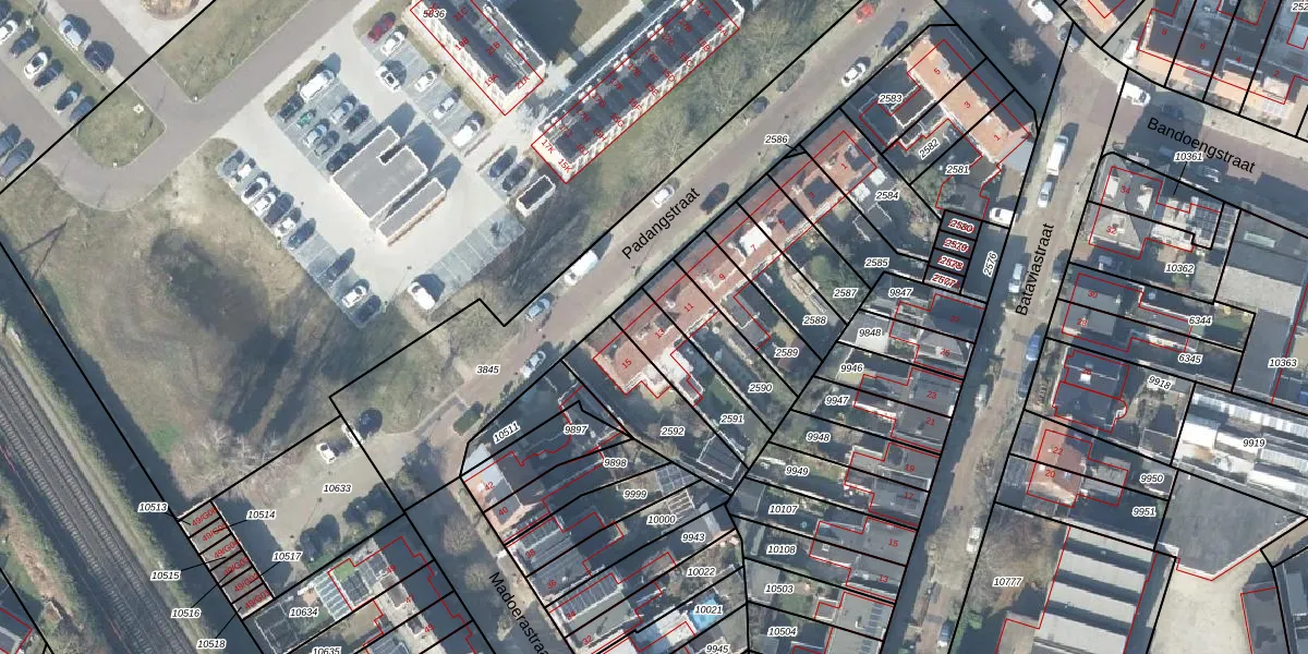Het perceel waarop Padangstraat 13 staat heeft een oppervlakte van 200 m². Dit is een middelgroot perceel. De perceeloppervlakte wordt geregistreerd door het Kadaster. Gedetailleerde informatie over de maten van dit perceel kunt u vinden in het rapport Kadastrale kaart met maatvoering van Padangstraat 13.