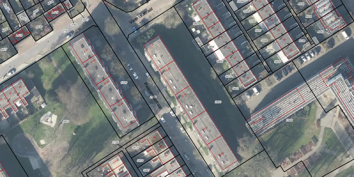 Het perceel waarop Palestrinastraat 21 staat heeft een oppervlakte van 3075 m². Dit is een zeer groot perceel. De perceeloppervlakte wordt geregistreerd door het Kadaster. Gedetailleerde informatie over de maten van dit perceel kunt u vinden in het rapport Kadastrale kaart met maatvoering van Palestrinastraat 21.