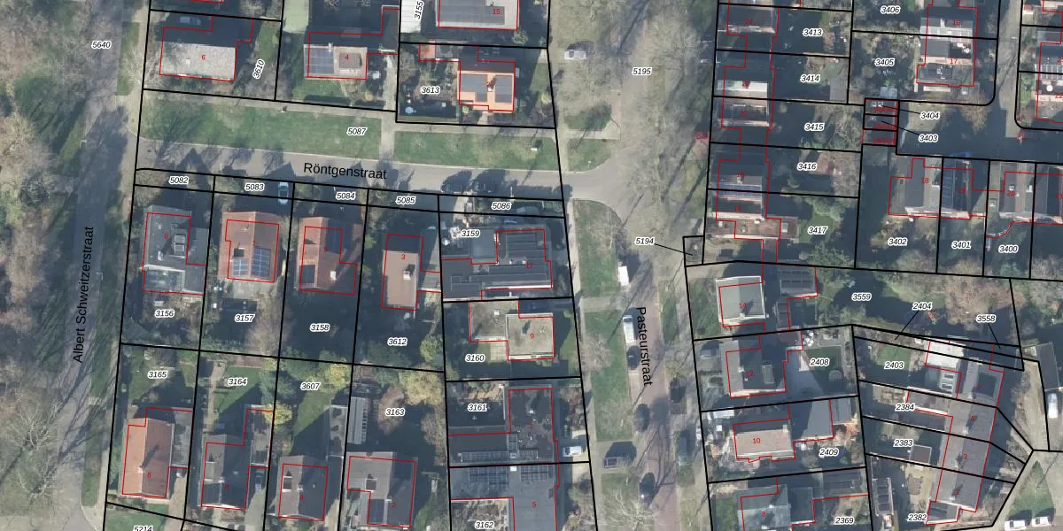 Gebruik de zoekbalk of klik op een perceel voor informatie over de adressen binnen dit perceel.