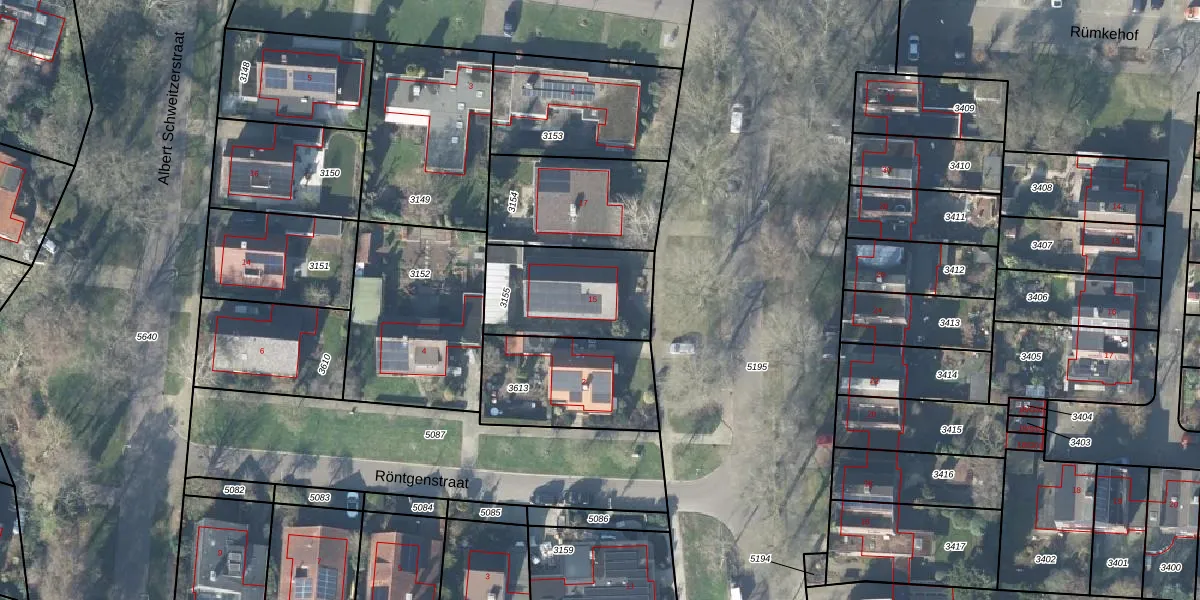 Gebruik de zoekbalk of klik op een perceel voor informatie over de adressen binnen dit perceel.