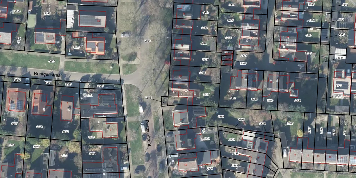 Het perceel waarop Pasteurstraat 16 staat heeft een oppervlakte van 385 m². Dit is een groot perceel. De perceeloppervlakte wordt geregistreerd door het Kadaster. Gedetailleerde informatie over de maten van dit perceel kunt u vinden in het rapport Kadastrale kaart met maatvoering van Pasteurstraat 16.