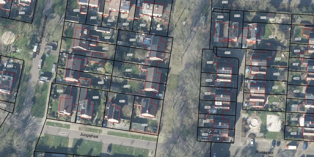 Gebruik de zoekbalk of klik op een perceel voor informatie over de adressen binnen dit perceel.